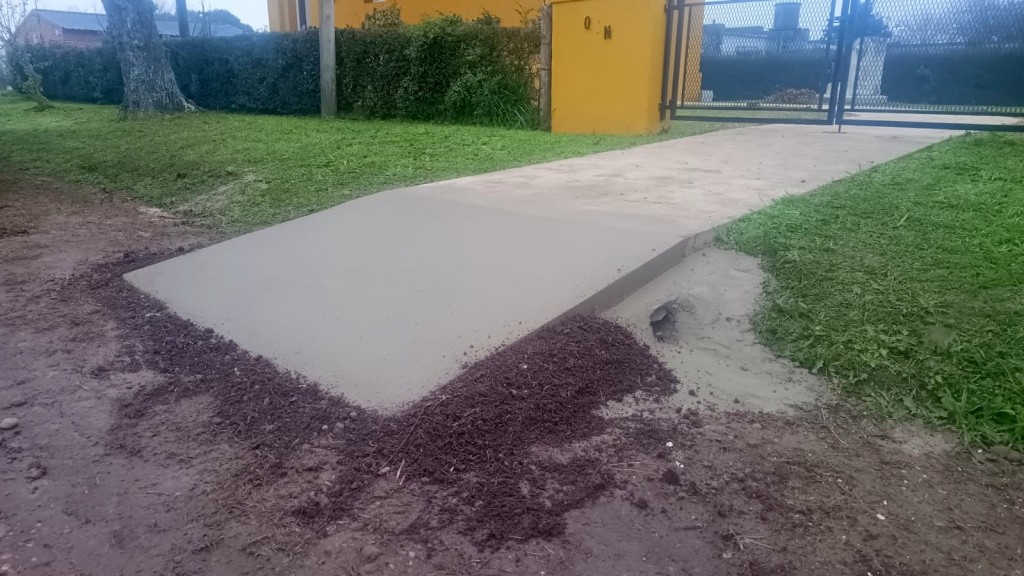 Paralelamente se colaboró con el arregló del vehículo policial de la localidad de Faustino M Parera. Se compraron 2 motoguadañas, sillas para la sede comunal y la construcción de una rampa ( foto ) para facilitar el acceso.