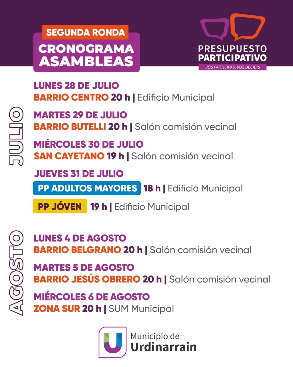 A partir del lunes 28 de julio, comienza la segunda ronda de asambleas en distintos barrios de Urdinarrain