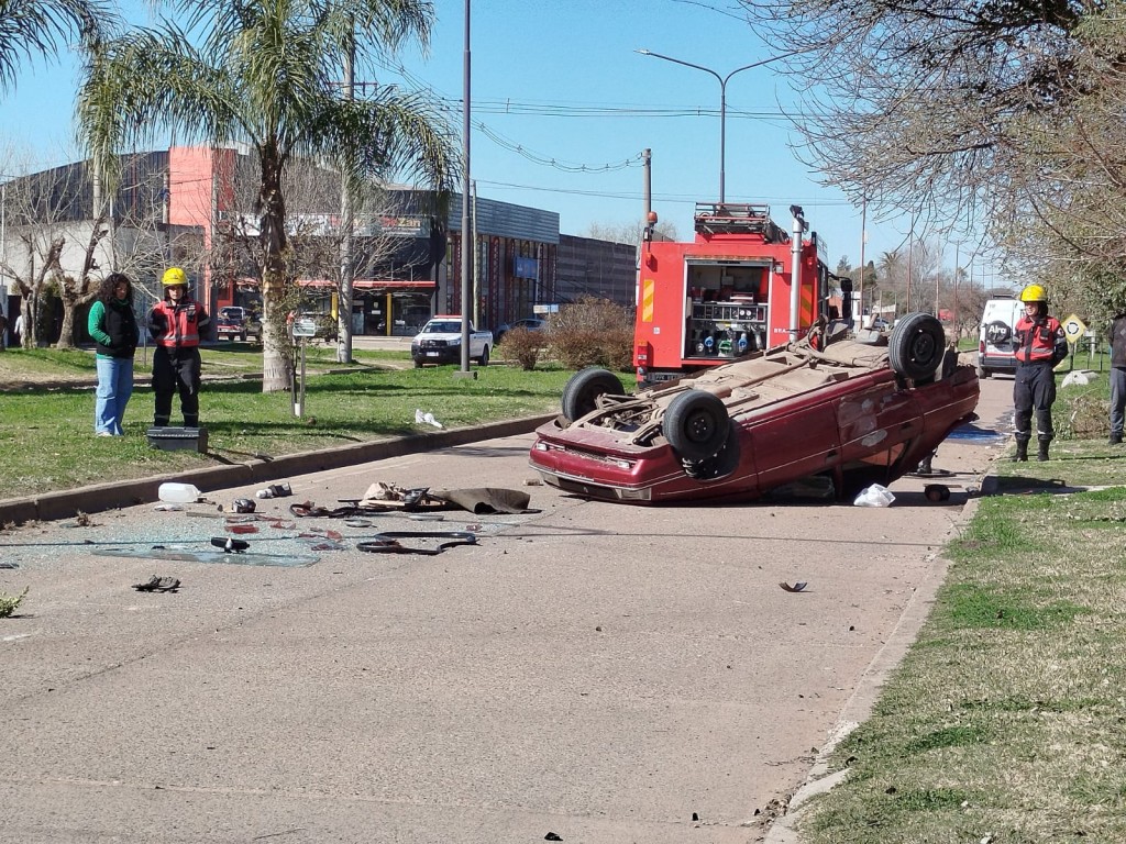 En consecuencia el Renault culminó volcado.