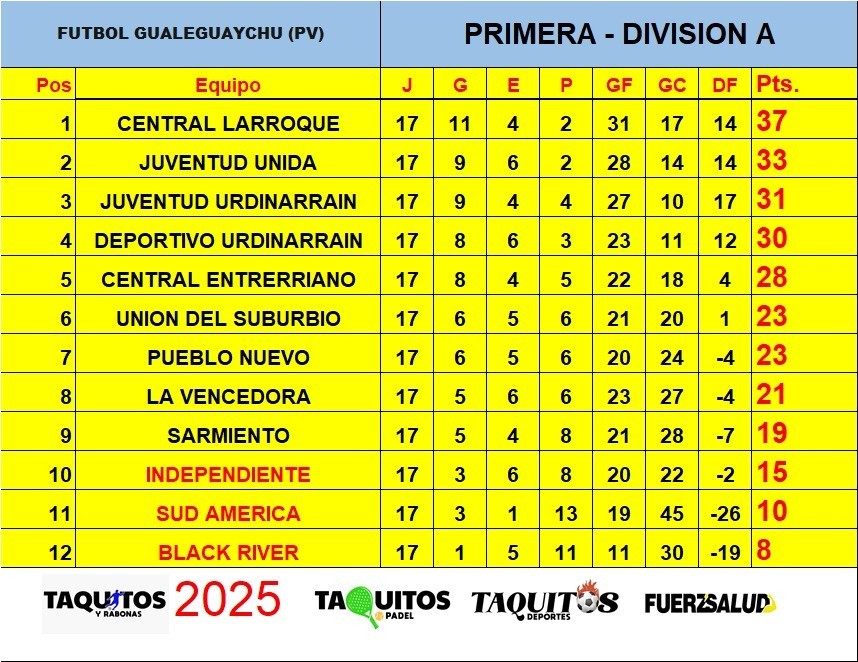 Este Sábado y Domingo se juega la 18va Fecha del Apertura. Este Sábado en los adelantados Juventud Unida derrotó a Sarmioento 1 a 0, mientras que Pueblo Nuevo superó a Sud America por el mismo resultado. Deportivo enfrenta a Union del Suburbio en el Treisse. Mientras que Juventud Urdinarrain que viaja al Estadio Municipal para enfrentar a La Vencedora.