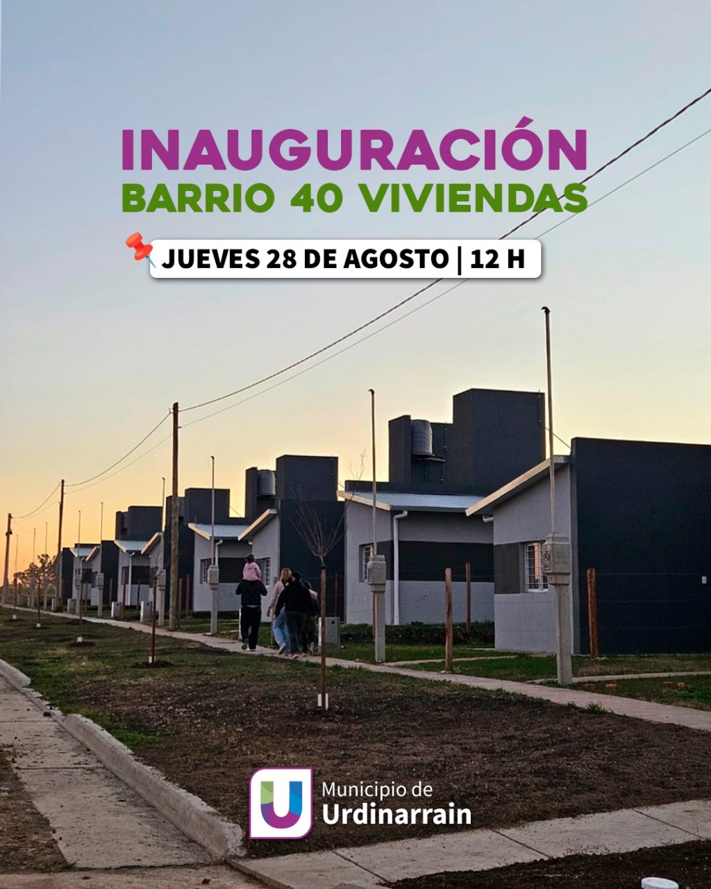 Este jueves 28 de agosto a las 12:00 horas, se llevará a cabo la inauguración oficial del Nuevo Barrio 40 Viviendas en la ciudad. El acto contará con la presencia del Gobernador Rogelio Frigerio, autoridades del IAPV y del Presidente Municipal Sergio Martínez, quienes harán entrega de las viviendas a las 40 familias que, a partir de ahora, podrán concretar el sueño de la casa propia.