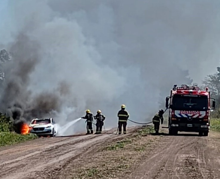 Un automóvil se incendió en un camino vecinal detrás del Parque Industrial