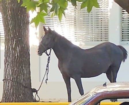 Un vecino, cansado de reclamar, dejó un caballo atado a un árbol frente al municipio y despues de discutir con el funcionario se fue