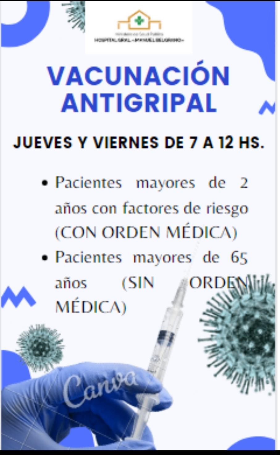 Desde la dirección del Hospital Belgrano se informa los dias y horarios de la Vacunación antigripal, de acuerdo a la edad y situación de los pacientes: