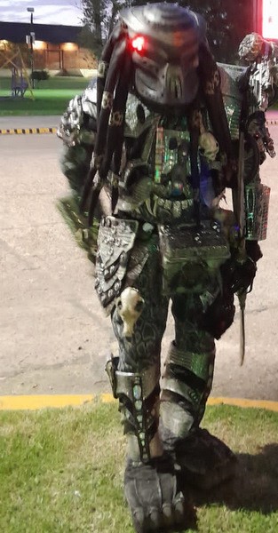 Este miercoles y jueves apareció en Urdinarrain "raro" sujeto disfrazado del famoso DEPREDADOR. El hombre es de nacionalidad Peruana y recorre toda la argentina con su disfraz