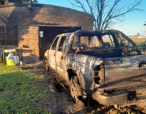 Una camioneta y herramientas agrícolas fueron víctimas de un incendio en zona rural de Aldea San Antonio