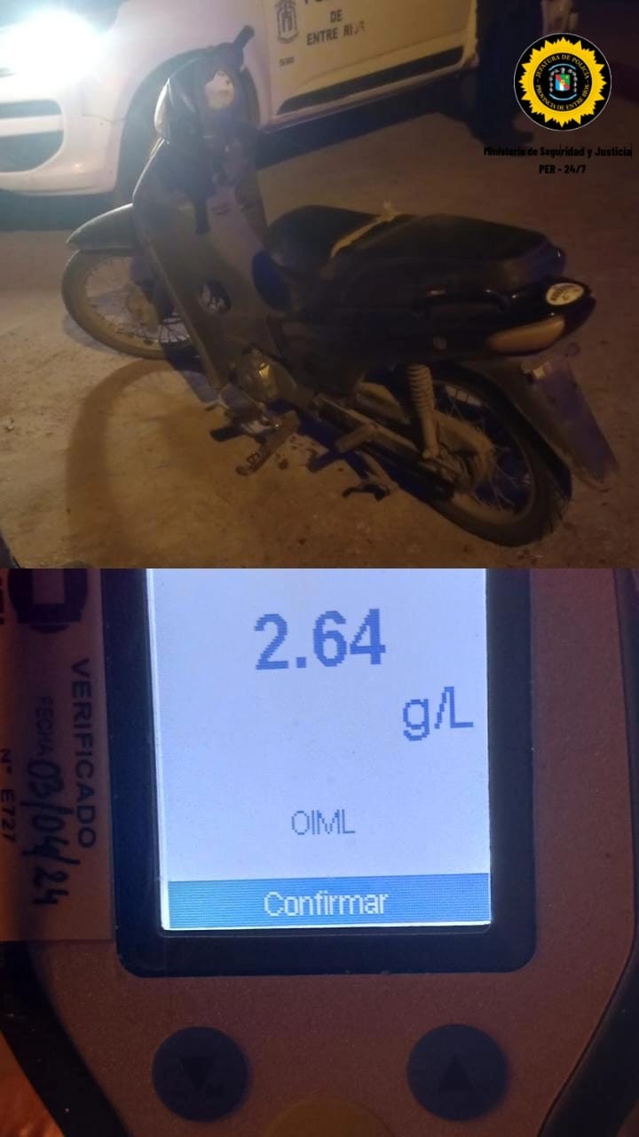 Alrededor de la 01:25 hs, de este viernes 14, fue detenido por un móvil de la Comisaría Urdinarrain, un motovehículo en calle calle Bicentenario y San Lorenzo cuando circulaba zigzagueando, conducido por un masculino de 63 años de edad, Domiciliado en Bv V. de la Plaza y Joannas quien al detenerlo y solicitarle la documentación emana fuerte aliento etílico y exhibe Licencia de conducir y cédula de identificación del motovehículo marca de Guerrero, modelo Trip 110, sin dominio encontrándose a su nombre, no contando con Seguro Obligatorio.