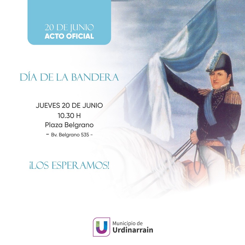 Acto Oficial | Día de la Bandera El próximo jueves 20 de junio a las 10.30 h, se realizará el acto patrio oficial en conmemoración al día de la Bandera Argentina.