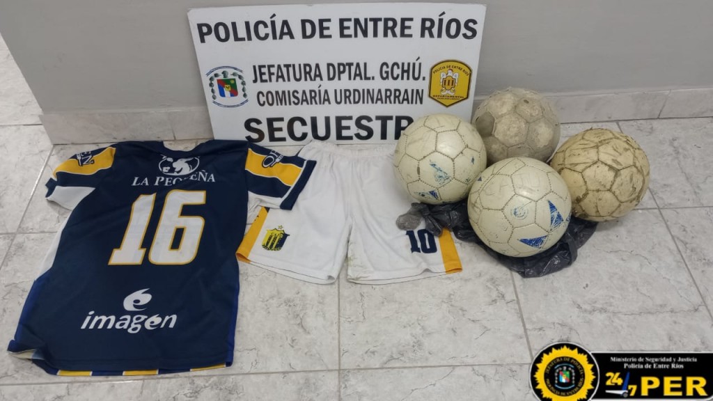 Desde la Comisaría de Urdinarrain se informa a Radio Cristal, que luego de haber recibido la denuncia del presidente de la entidad deportiva del Club Juventud Urdinarrain, en la fecha (martes 27)  y luego de haber observado las camaras de videovigilancia y de realizar las tareas investigativas de rigor, se pudo recuperar de una vivienda ubicada en Bv. Entre Ríos y Av. Libertad, dos pelotas de fútbol y una camiseta del Club Juventud N° 16.y de otra vivienda ubicada en Roque Sáenz Peña, dos pelotas de fútbol y el shorts N° 10 del mencionado club. Cabe mencionar que dicho ilícito fue perpetrado por menores de edad y entregados los elementos por sus progenitores