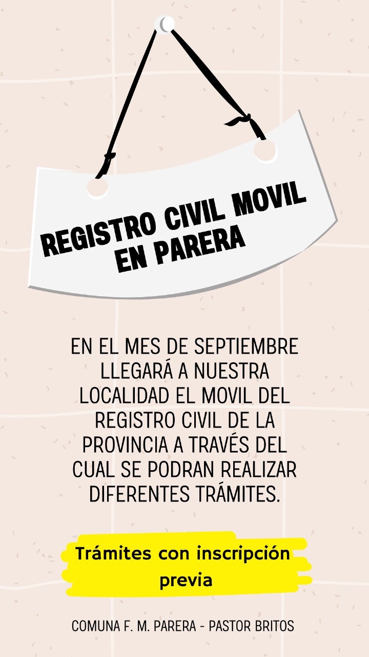 [09:41, 30/8/2024] Constanza Lugo: REGISTRO CIVIL MOVIL A PARERA: