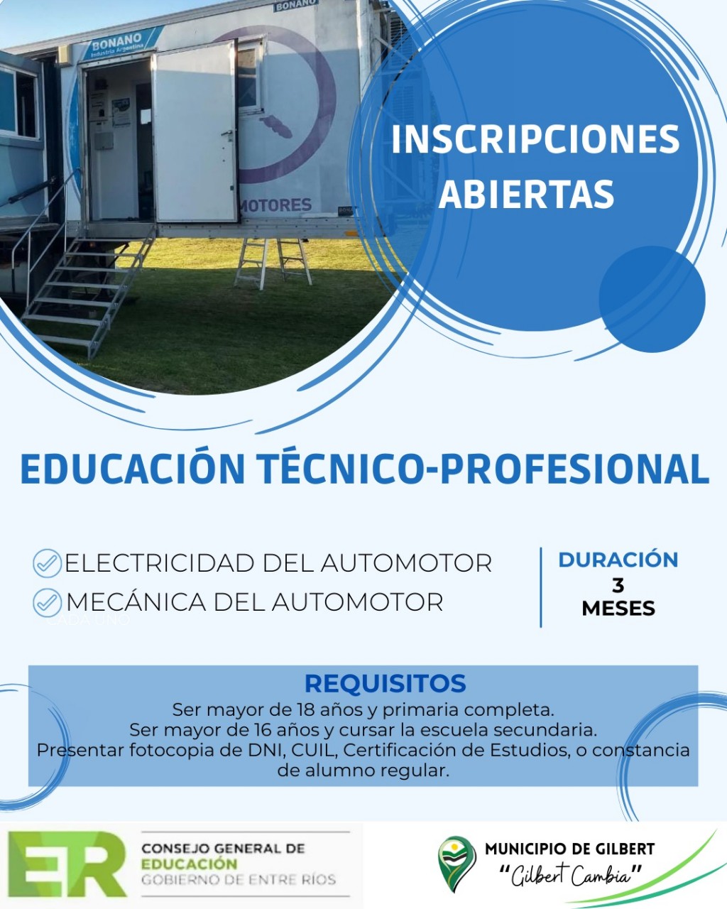 El Aula Taller Móvil en Gilbert tiene dispuestos dos espacios formativos: Electricidad del Automotor y Mecánica del Automotor en el área de Mecánica Automotor correspondiente a la modalidad de formación profesional de Aula Taller Móvil N° 1 del Consejo General de Educación a través de la institución certificante Escuela de Educación Técnica N° 1 Dr. "Osvaldo Magnasco" de la ciudad de Rosario del Tala.