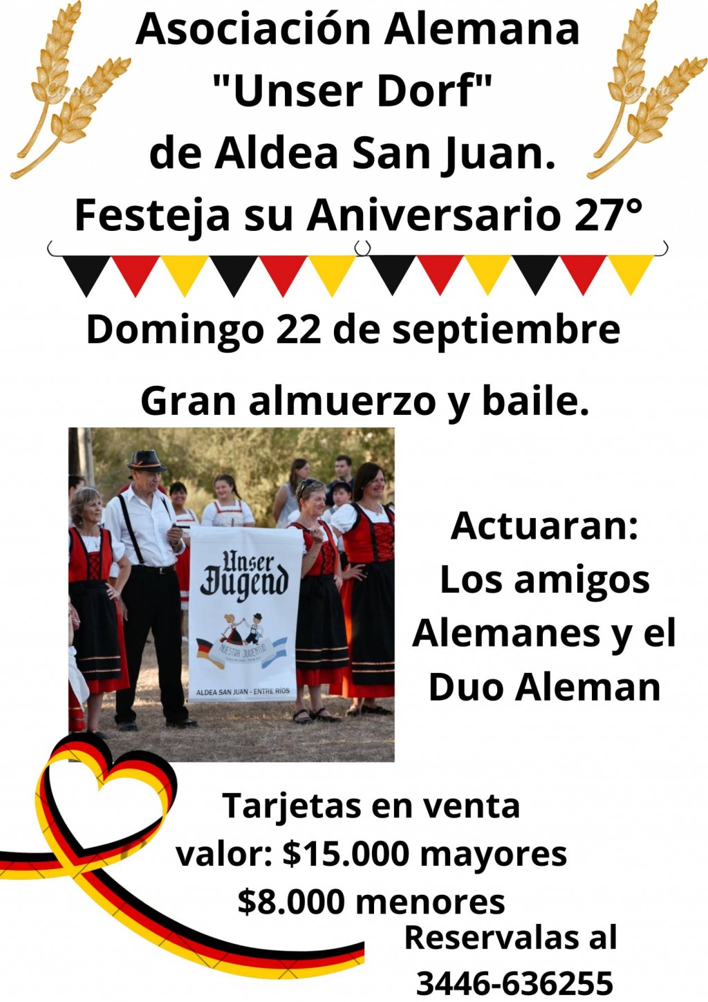 Festeja su Aniversario 27° este domingo 22 de septiembre con un almuerzo y gran baile. Con la actuación de las Orquestas Los Amigos Alemanes y el Dou Alemán.