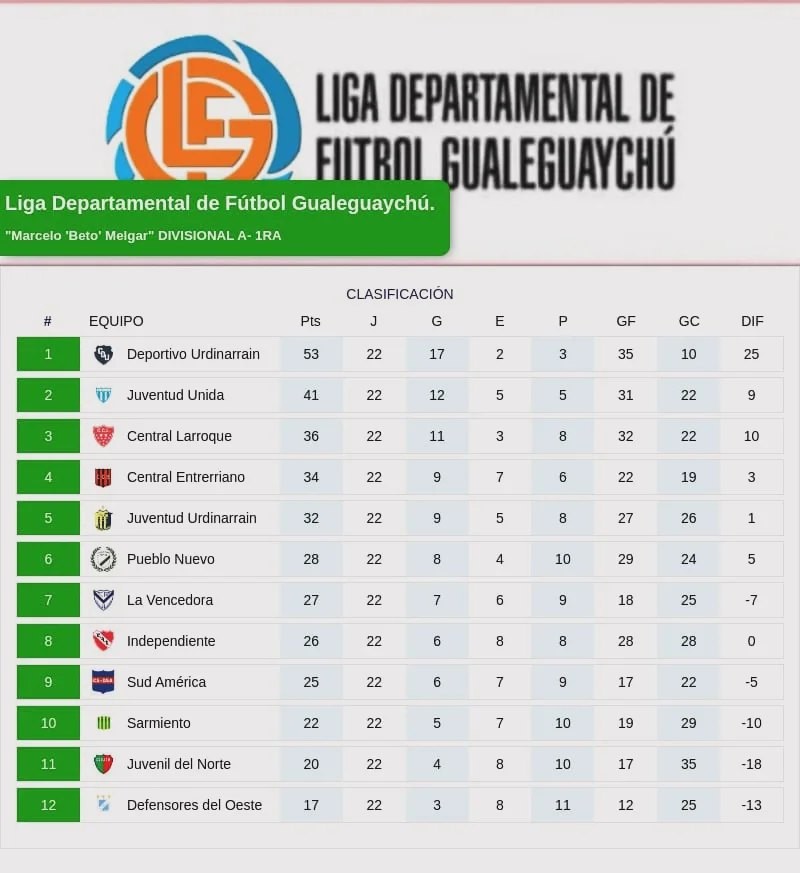 CAMPEON: DEPORTIVO URDINARRAIN - SUB CAMPEON JUVENTUD UNIDA - - TROFEO A LA VALLA MENOS VENCIDA: JUAN GONZALEZ (DEPORTIVO) - - GOLEADOR DEL TORNEO: ANGEL DAVID TELLECHEA (DEPORTIVO) - Este Fin de Semana Comienza el TORNEO CLAUSURA 2024