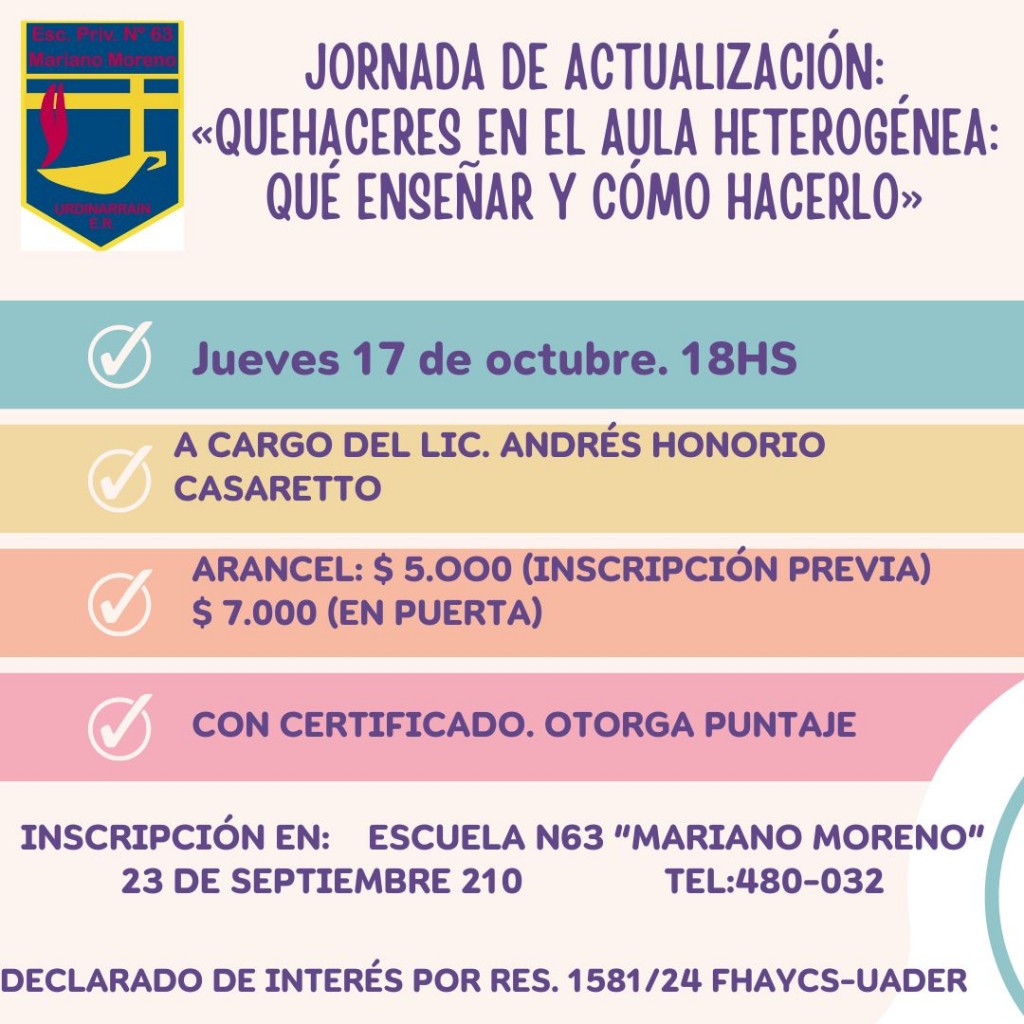Nueva jornada de actualización docente Escuela Mariano Moreno: