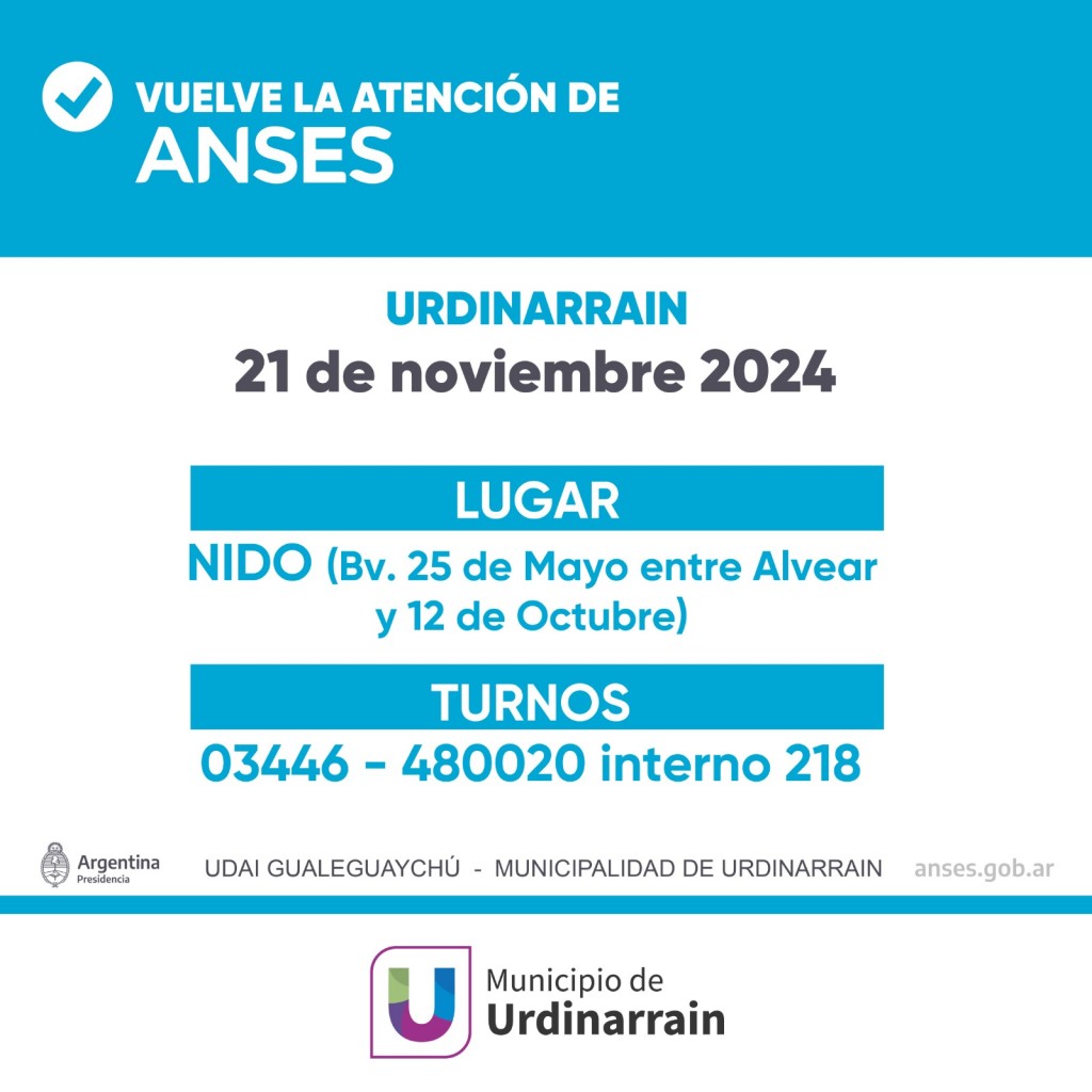 ANSES | Jueves 21 de noviembre atenderá en Urdinarrain