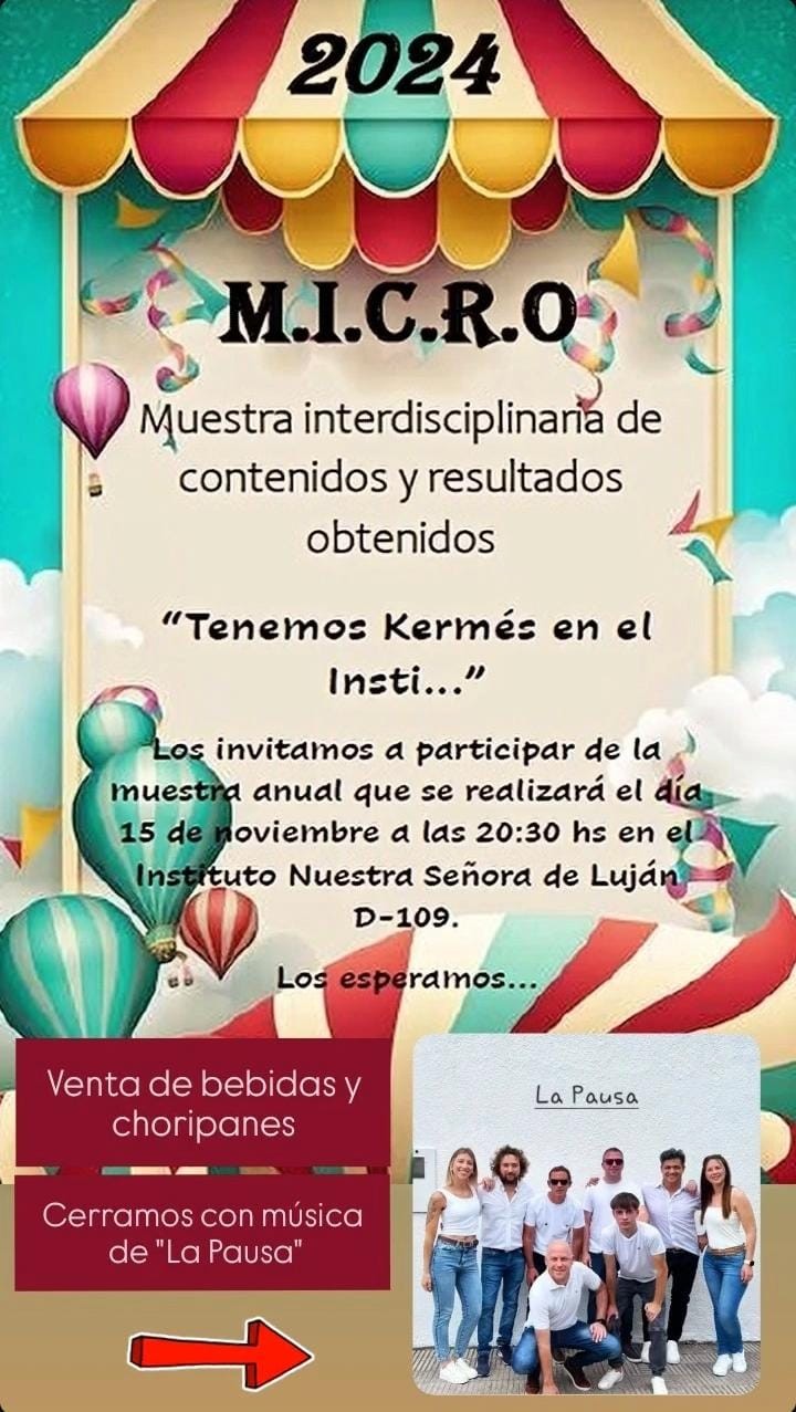 Este Viernes en el Instituto Nstra Sra de Luján, como todo los años se llevará a cabo le la MUESTRA INTERDISCIPLINARIA DE CONTENIDOS y RESULTADOS OBTENIDOS. Habrá Kermess y actuará LA PAUSA