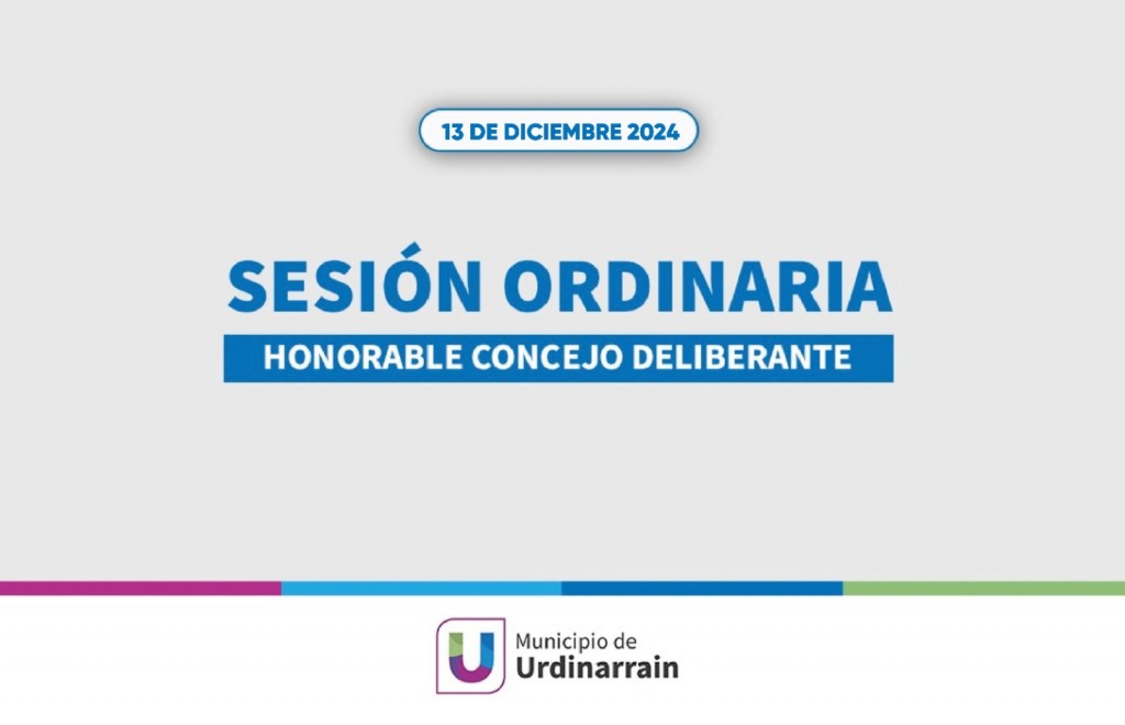 URDINARRAIN, Este Viernes 13 de diciembre de 2024, a las 12.30 hs en la Sala de Sesiones del HCD, se llevará a cabo una nueva sesión del H.C.D de Urdinarrain para tratar lo siguiente: