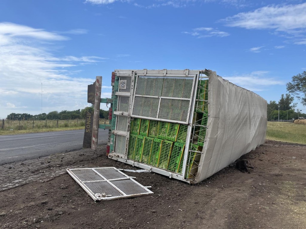 Este sábado por la mañana, poco antes de las 9:30 horas, un camión cargado con aproximadamente cinco mil aves sufrió un accidente en la Ruta 20, a la altura de la metalúrgica ubicada entre el Destacamento de Vialidad de Basavilbaso y el Acceso de Tránsito Pesado por Línea 23, en un tramo de alta circulación vehicular.