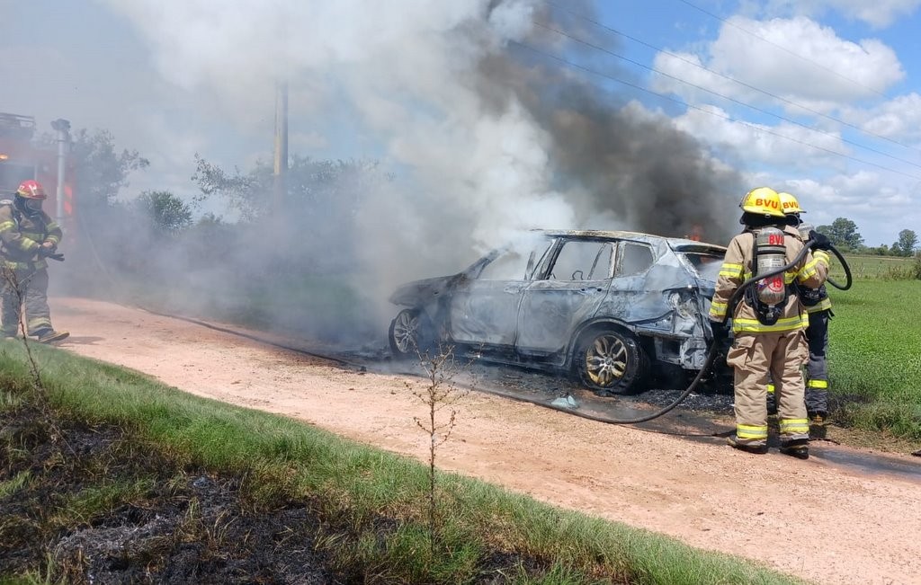 Minutos antes de la hora 14 de este martes 18 se produjo el incendio de un coche BMW, oriundo de Buenos Aires, que ingresaba a un camino vecinal ( que va al badén de arroyo los bayos ) desde la ruta 20, zona acceso norte a Urdinarrain.