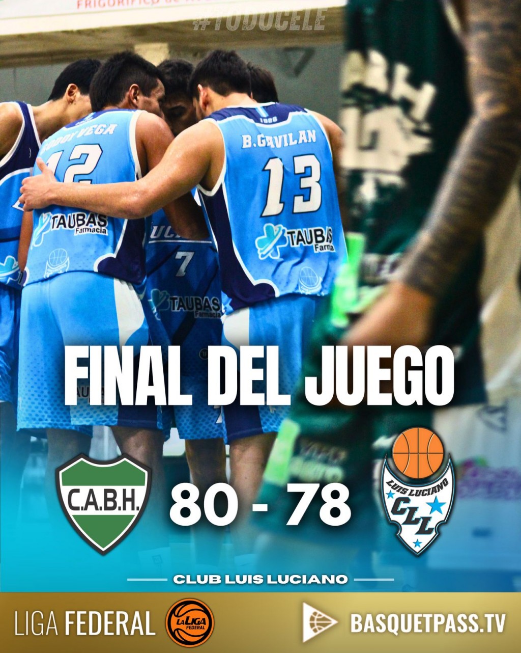 Luis Luciano de nuestra ciudad, perdió ante BH de Gualeguay por 80-78, por un triple de Julián Fedele en la última bola del juego, y se quedó sin invicto, después de cinco triunfos consecutivos