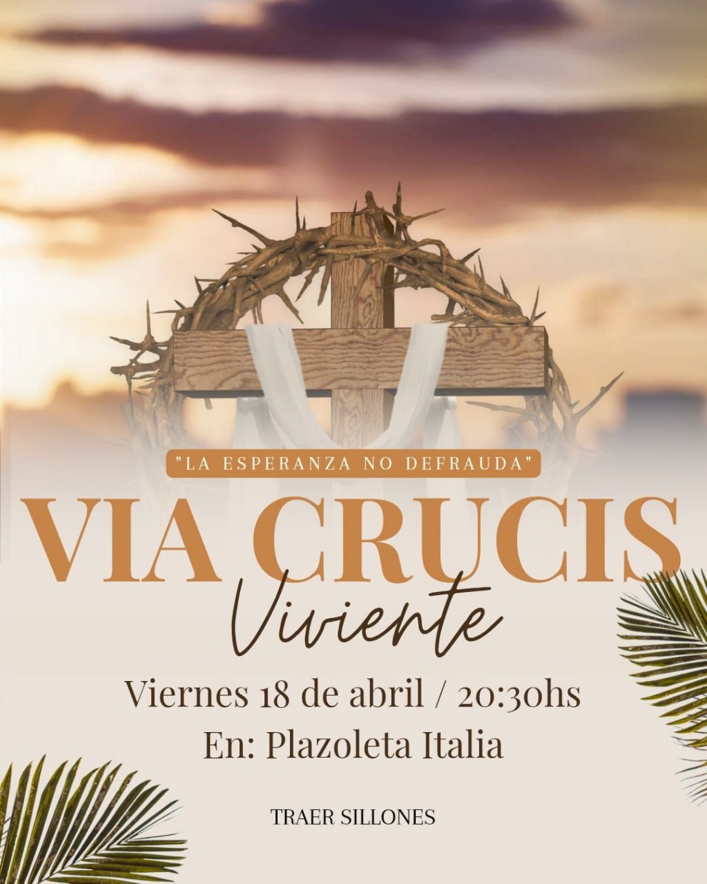 20.30 hs via Crucis viviente -Plazoleta ITALIA Bv Irigoyen y Alem - Llevar Sillones