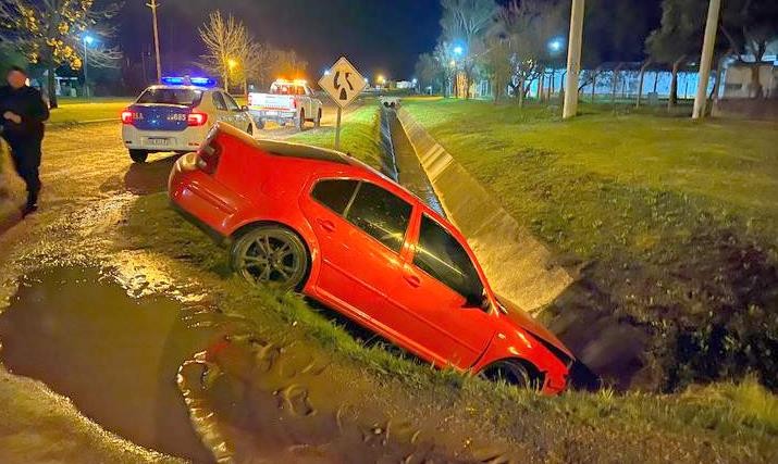 El primer siniesto -a las 06.00 am- se produjo en Bv. 25 de Mayo y Bv. 12 de Octubre, en el cual  personal policial observa a través de las cámaras de videovigilancia a un automóvil marca VOLKSWAGEN BORA color rojo, que al transitar por Bv. 25 de Mayo y girar hacia su similar 12 de Octubre cae al desagüe pluvial.