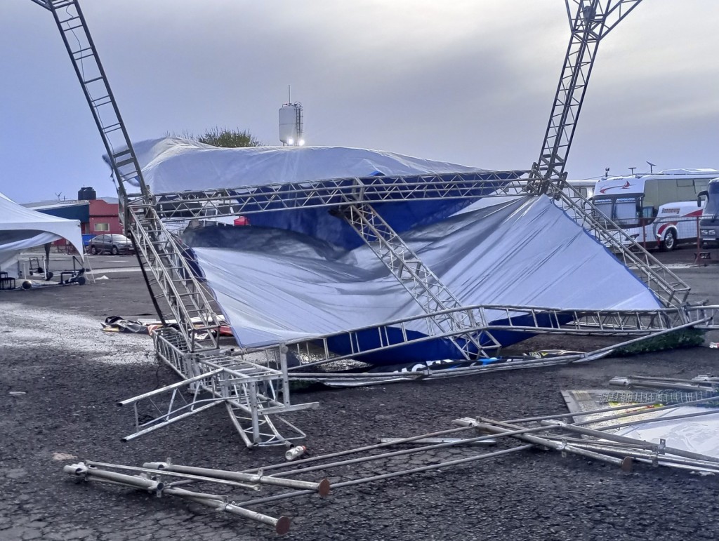 Impresionantes ráfagas de vientos en la madrugada del domingo en el autódromo Ciudad de Paraná. Graves daños en las estructuras de carpas, marquesinas y una pantalla gigante. Hubo algunos daños a vehículos. Este fin de semana está compitiendo el CarShow Santafesino.
