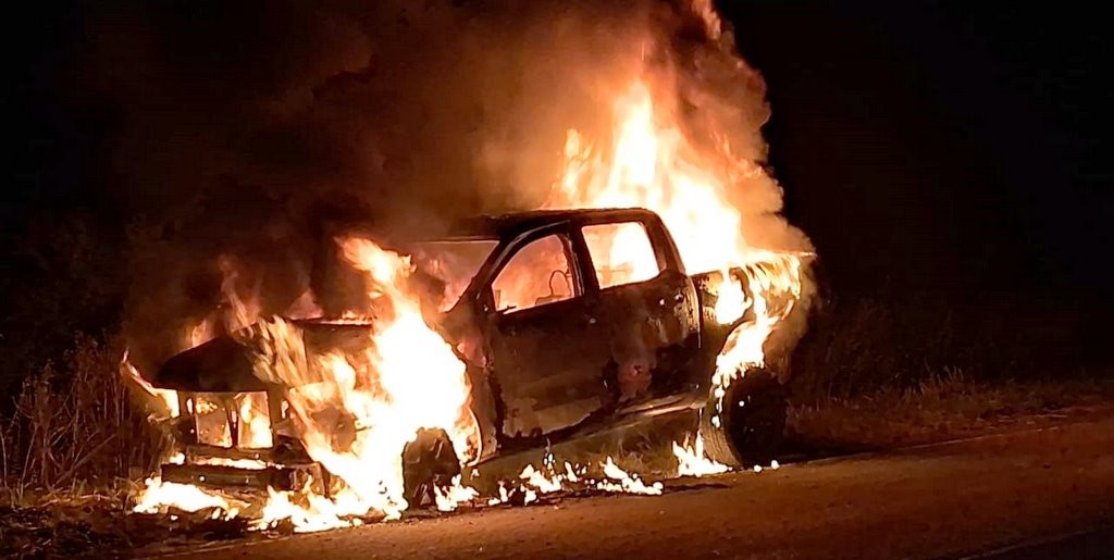 Tremendo el incenio que terminó con un pick up en Ruta 51, zona del Clia, alrededor de las 10 de la noche. Lamentablemente al llegar personal de Bomberos Voiluntarios y policia, el rodado ya estaba envuelto en llamas.