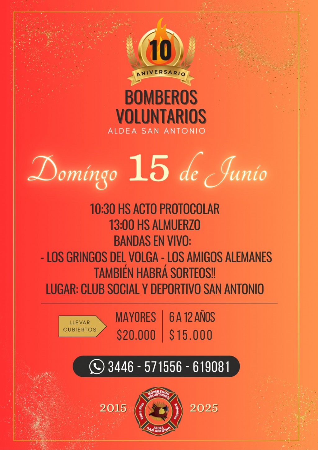 El domingo 15 de junio celebramos el 10° aniversario de la creación de la Asociación Civil de Bomberos Voluntarios de Villa San Antonio.