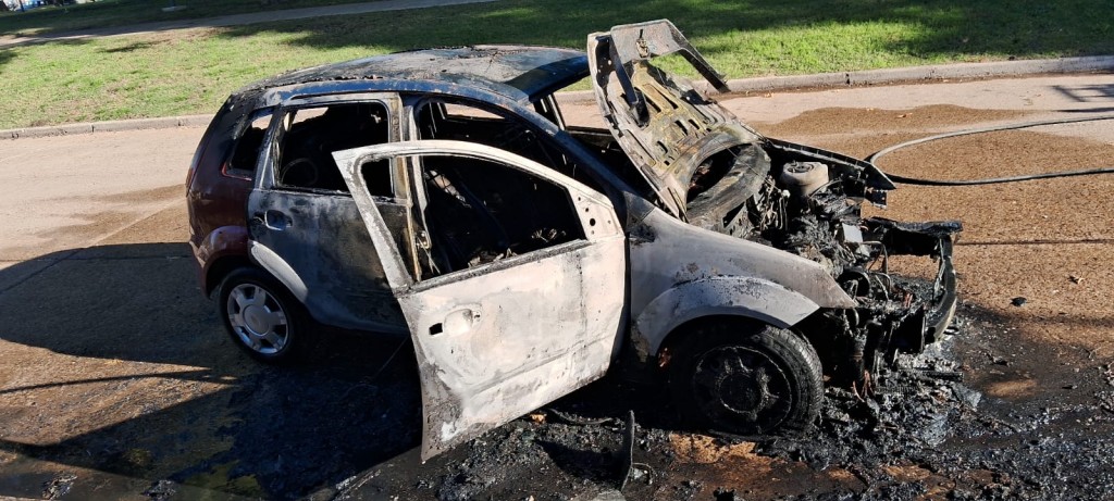 Un Auto fue devorado por las llamas en el centro de Urdinarrain